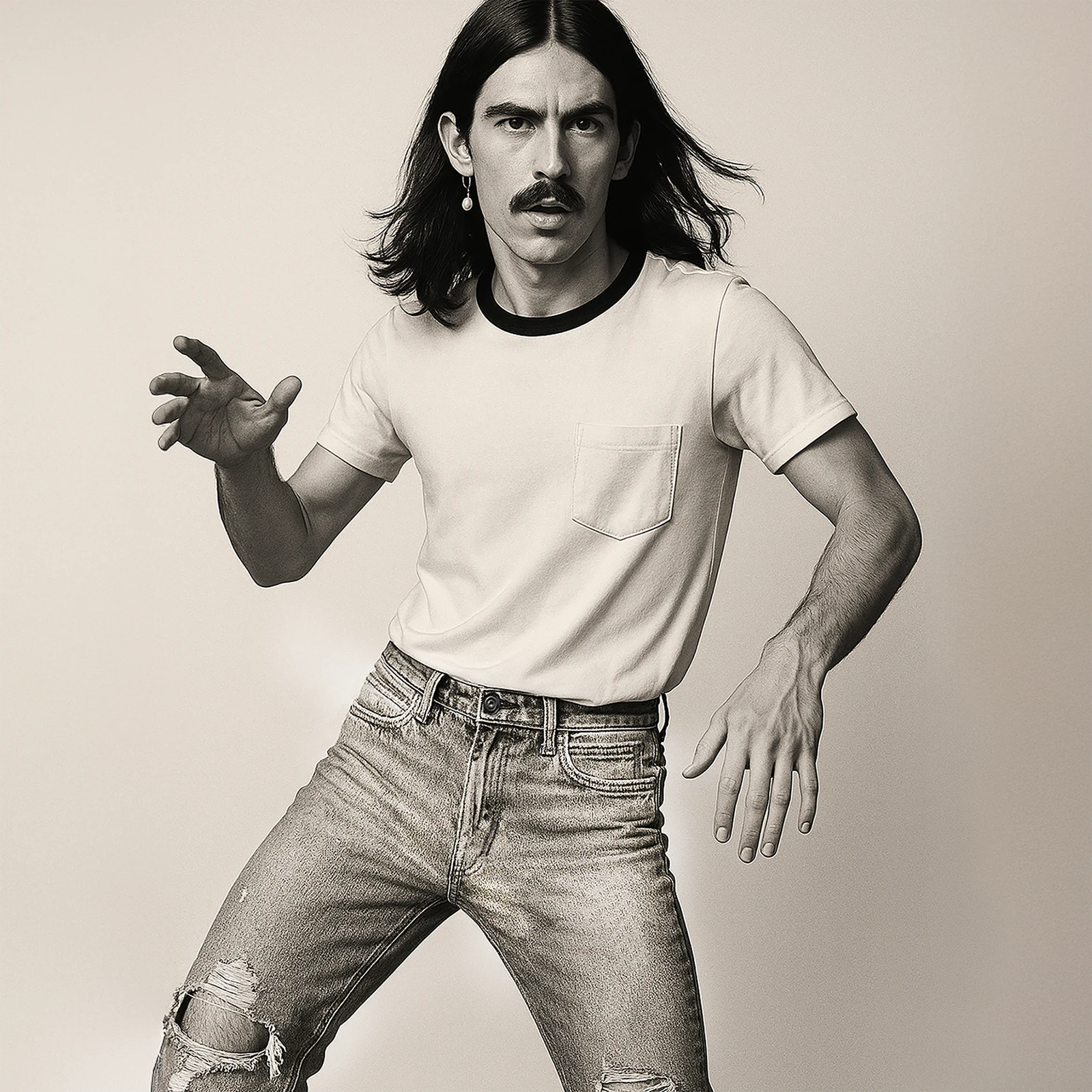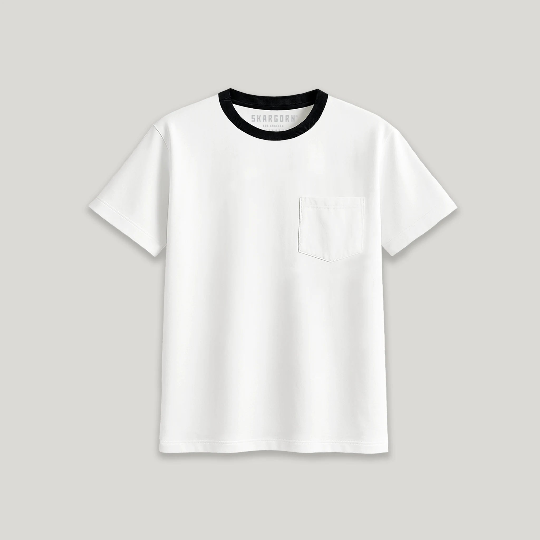 TEE 50 Ringer - Not your average pocket tee. Black contrast neck band marked by the SKARGORN tooth. Shoulder-framing cut, and a high-hip hem. Wear it tight or oversized - either way, you're trouble.