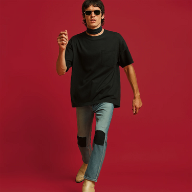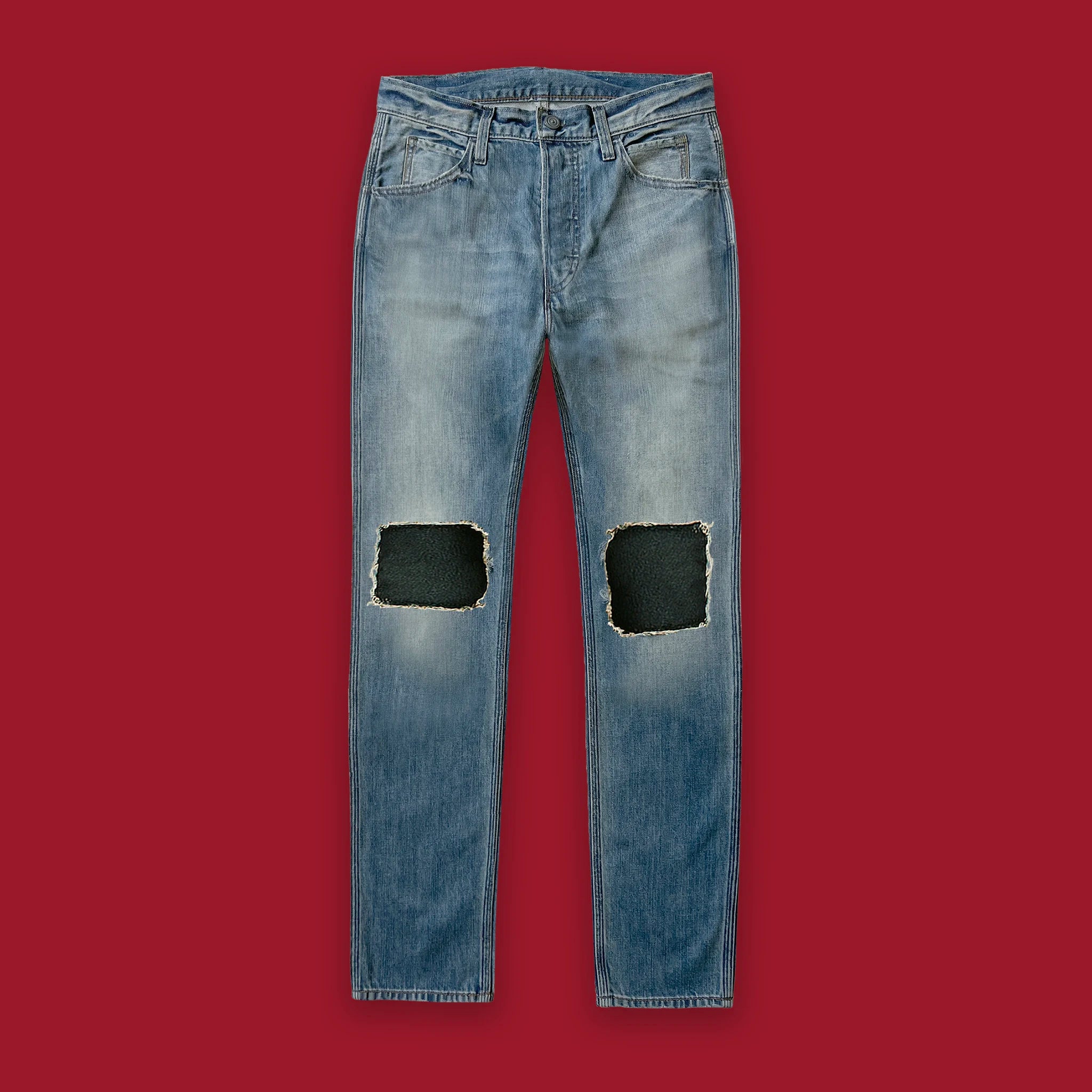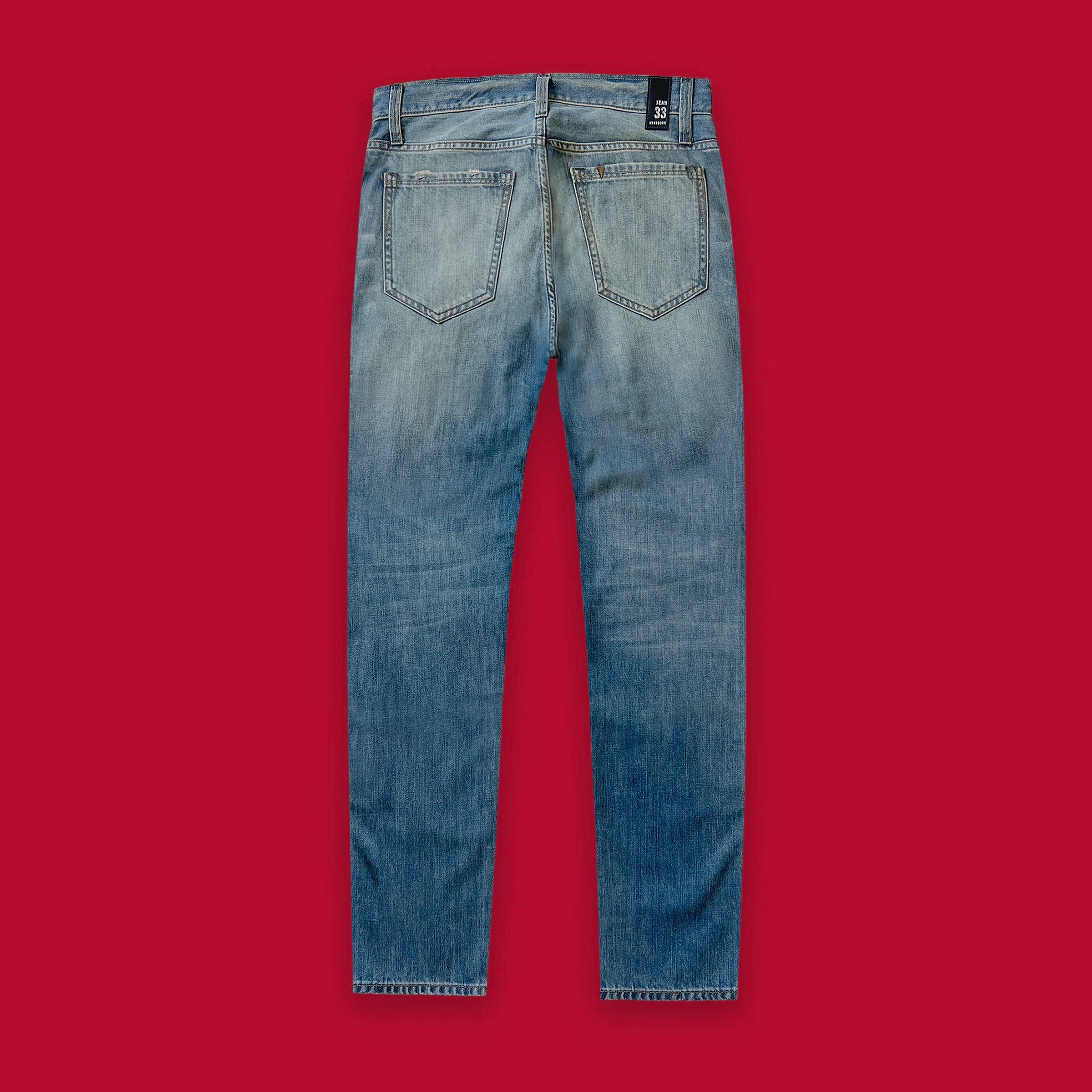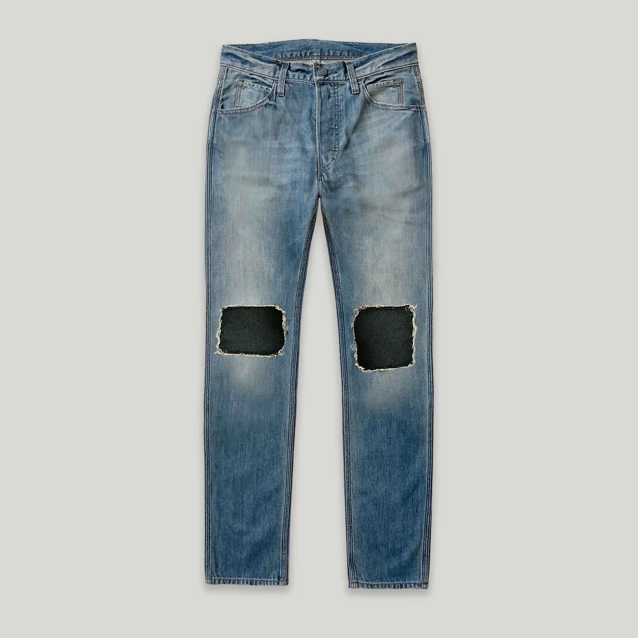JEAN 33 Wolf - Anti-fit with a button fly. Cut oversized with a dropped front rise and a leg that tapers in a clean line towards the ankle. Triple-needle seams and tooth-stitched reinforcement hold where it counts.   Finished with SKARGORN's ripples button, metal tooth, and JEAN 33 leather style patch.