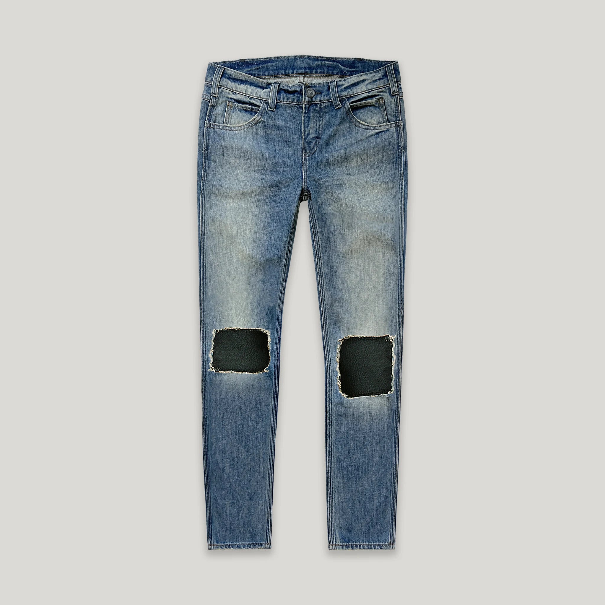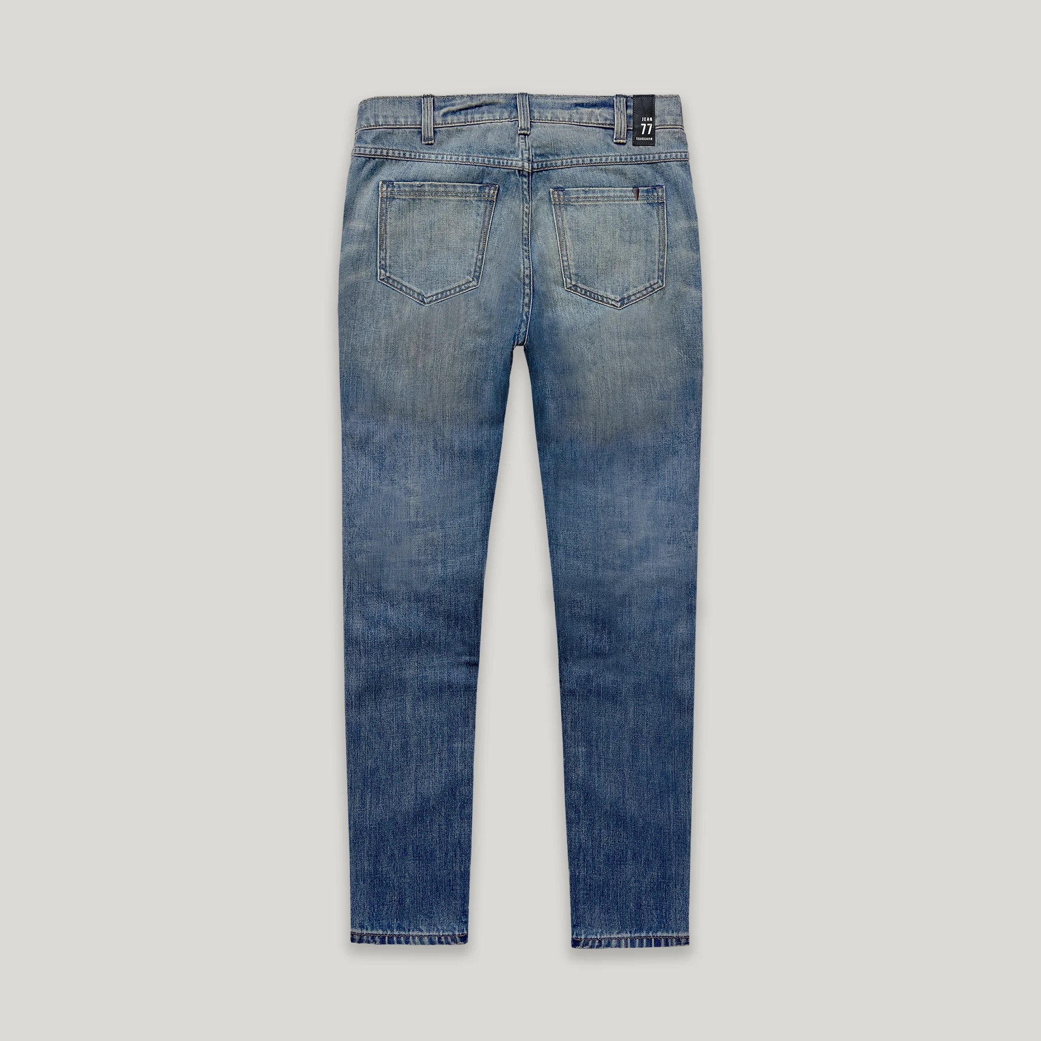 JEAN 77 Thorn - Mid-rise, zip fly, ankle crop, tapered fit with attitude. Triple-stitched, tooth-reinforced, and finished with rusted metal button and leather JEAN 77 patch.
