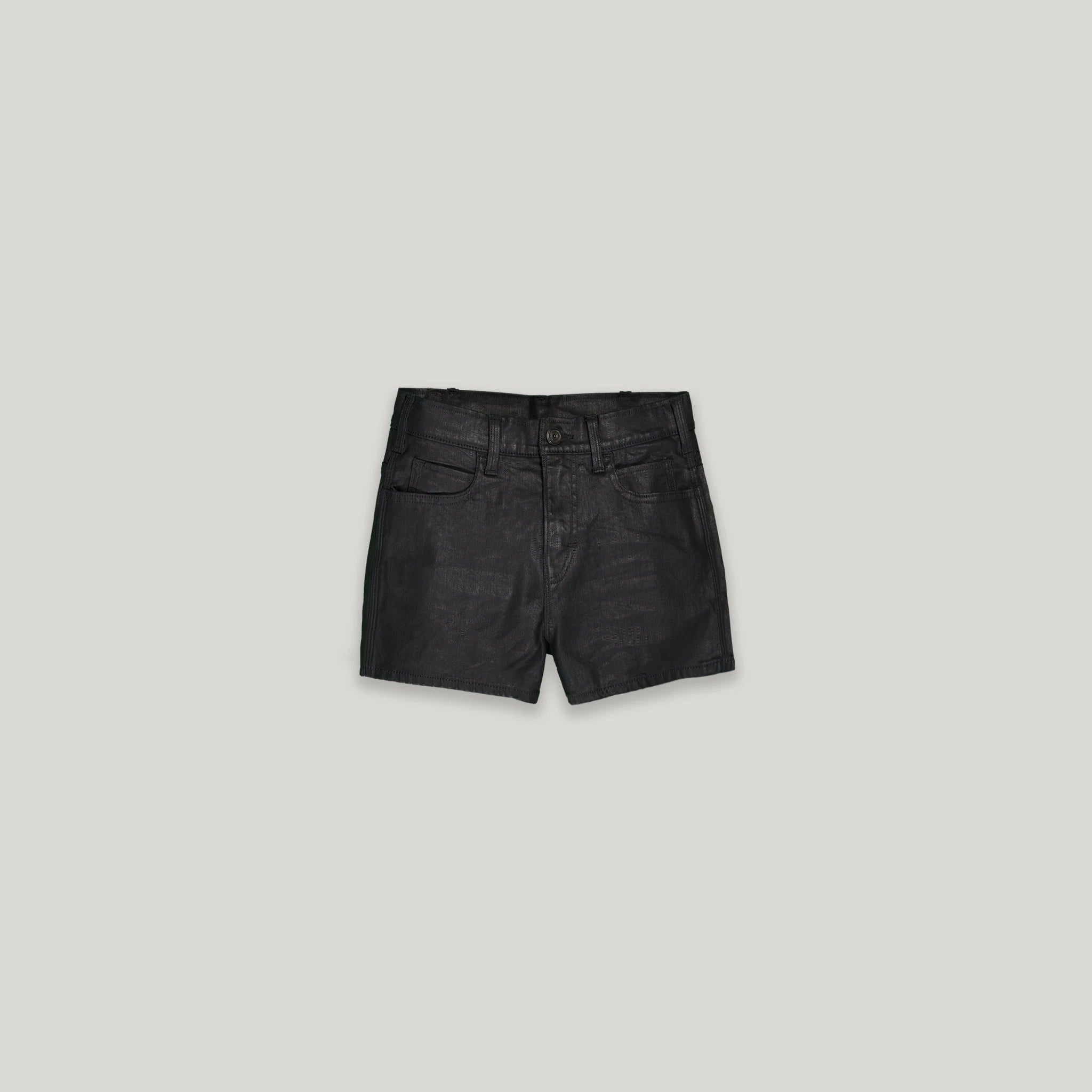 . Matte black stretch denim (18% elasticity)