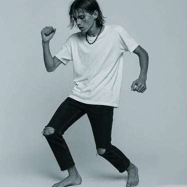 TEE 50 Jet - Cut to amp up your poise. Lean vintage proportions that frame the shoulders. The length hits the hip. The neck is marked with the SKARGORN tooth. Tight or oversized, you are in control.